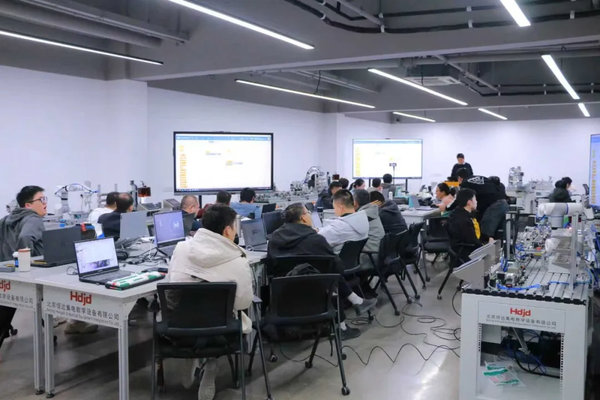 杭州培训现场照片 在杭州,中优与北京恒达集电教学设备有限公司联合举办“2025年全国智能制造传感及控制系统技术提升培训班”;同期在济南,中优携手山东栋梁科技设备有限公司共同举办了“智能感知与自主控制技术应用能力提升高级研修班”。两场培训聚焦智能制造传感及控制技术,充分利用合作各方在智能制造领域的专业技术优势,为参培学员提供了从基础理论到实践应用的全方位培训支持。
